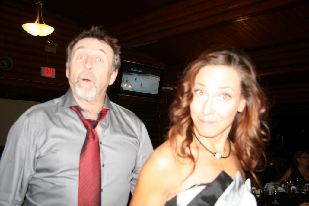 2011 Curling Christmas Party -- Is the camera out of focus or are they? I think the hockey game is tied at 2.