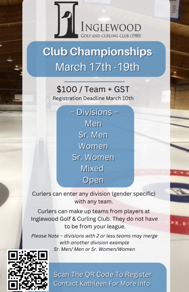 Registration in now open for the Inglewood Golf & Curling Club – 2022/2023 Club Championships.
